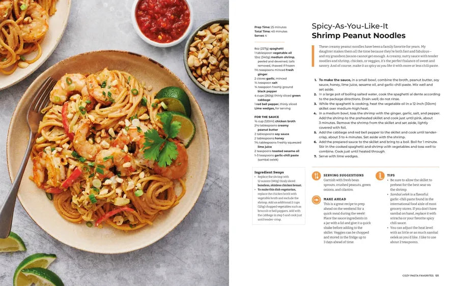 Not up for making that from-scratch sauce or spending hours in the kitchen? That’s okay. The recipes are adaptable and forgiving, with handy tips for substitutions, storage, and make-ahead options. Above all, these are recipes you can turn to when you're uninspired and getting dinner on the table feels like a chore. Reclaim dinnertime and celebrate the love and comfort of a family meal.