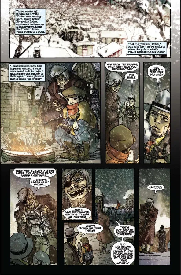 In the dark days of the Great Depression, young reporter Peter Parker finds himself forever changed by a spider’s bite — and resolves to take on crime and corruption as the urban vigilante called Spider-Man! And there are no shortage of foes — from gangland bosses the Goblin and Crime Master to pulp-era twists on familiar faces like Kraven, Chameleon, Doctor Octopus and more! But will the seductive Felicia Hardy prove friend or foe? Plus: Spider-Man Noir enters the Spider-Verse via an encounter with Mysterio — and shares a spectacular team-up with a six-armed Spidey!