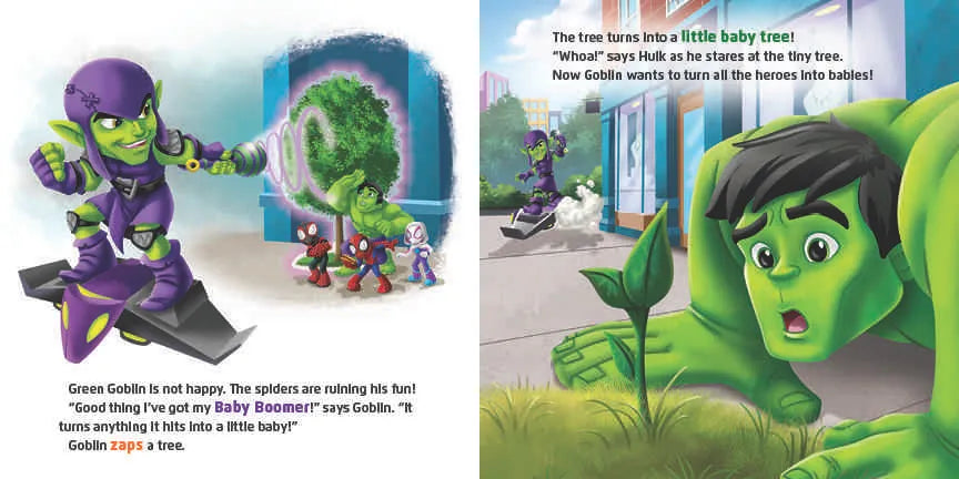 Hulk is one big baby! It's up to Spidey to get him back to old self in this exciting storybook.