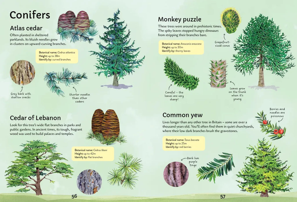 Learn about the amazing trees all around us with this inspiring illustrated guide. The perfect companion for budding nature lovers, it covers over 100 different trees that can be spotted everywhere from town parks to wild mountainsides. Use the beautifully detailed illustrations of bark, leaves, flowers and fruit to help you identify the trees you see.
