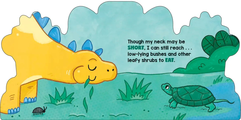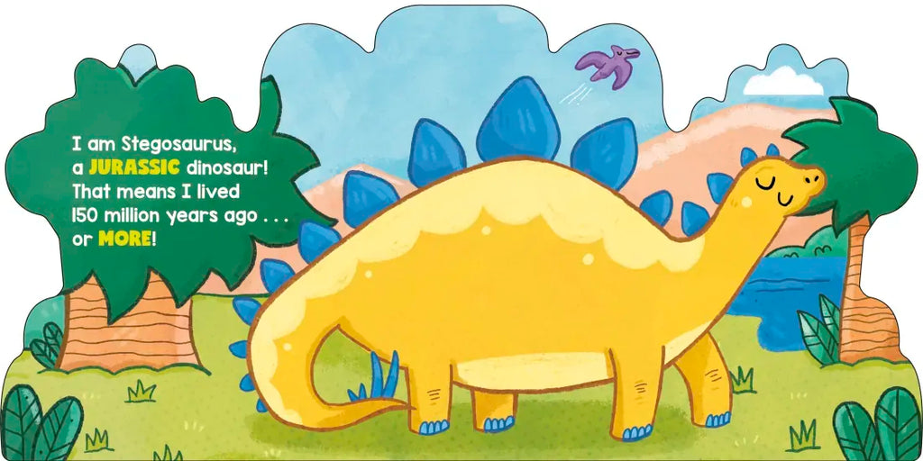 Young readers will love exploring this dinosaur-shaped board book filled with playful rhymes and facts all about the mighty Stegosaurus!