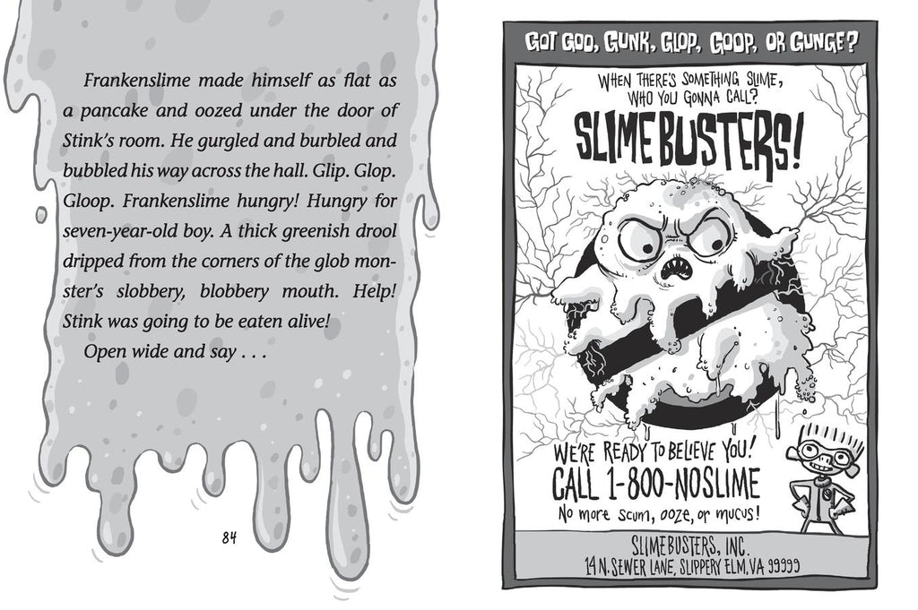 Glip! Glop! Gloop! What looks like dog vomit, smells like a corpse flower, and stars in one of the scariest movies Stink Moody has ever seen? Is it the Blob? The Glob? Son of Glob? No, it’s . . . slime mold! Stink may be a super science geek, but even Dr. Stinkelstein is feeling freaked out about having a slime mold living and growing in his very own room. At Saturday Science Club, Stink learns that these one-celled organisms are smart enough to find their way out of mazes and gang up on food sources — so who says they aren’t smart enough to take over Stink’s pets, Stink’s room, Stink himself, and . . . the world? Vintage horror flicks meet classic Star Trek episodes as a wary Stink (with some help from Dr. Judy Moody) comes to know and love an unusual new pet in a hilarious adventure that sneaks in factoids and comics at each chapter’s end.