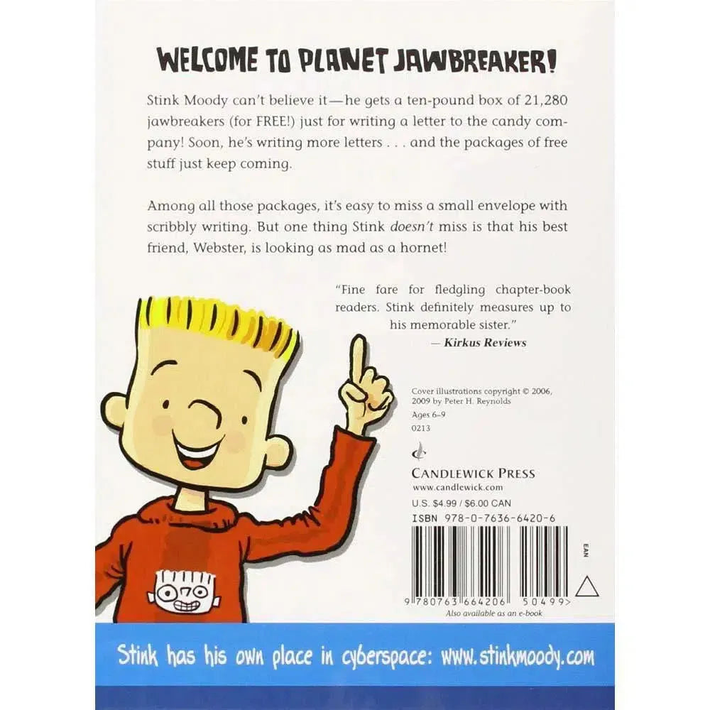When Stink buys a mammoth jawbreaker that doesn't break his jaw, he writes a letter of complaint to the manufacturer — and receives a ten-pound box of 21,280 jawbreakers for his trouble! This unexpected benefit of acing the art of letter-writing in school sure gets Stink thinking. Soon Stink is so preoccupied with getting free stuff sent to him that he overlooks a scribbly envelope in the mail pile — until his best friend, Webster, starts acting standoffish and looks as mad as a hornet.