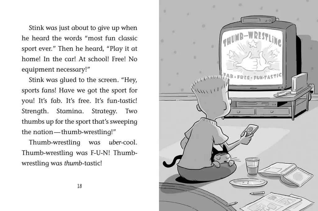 Stink needs a sport, fast! Can he wrestle a win at thumb wars? Or will a perfect karate kick lead him to victory? Hii-ya!