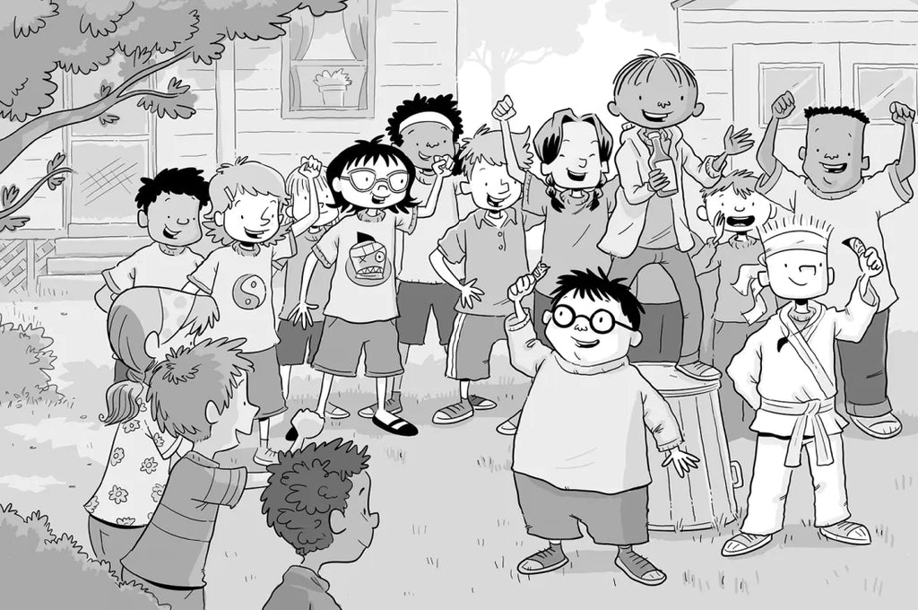 Stink Moody, family brain, brings home a report card that isn’t perfect? Yikes! Time for him to get into fighting shape and beat back that U for Unsatisfactory in PE! A scan of the sports channel leads to a knock-out find: world-class thumb wrestling, with tricky moves like Snake in the Grass and Santa’s Little Helper (no equipment needed, save for a tiny terrifying mask to sit on your thumb). But when Mom and Dad are not wowed, Stink gets another idea: he’ll kick and punch his way to a yellow belt with the help of a Dragon Master and a mind as still as a pond. Can you say Crouching Tiger, Hidden Thumb?