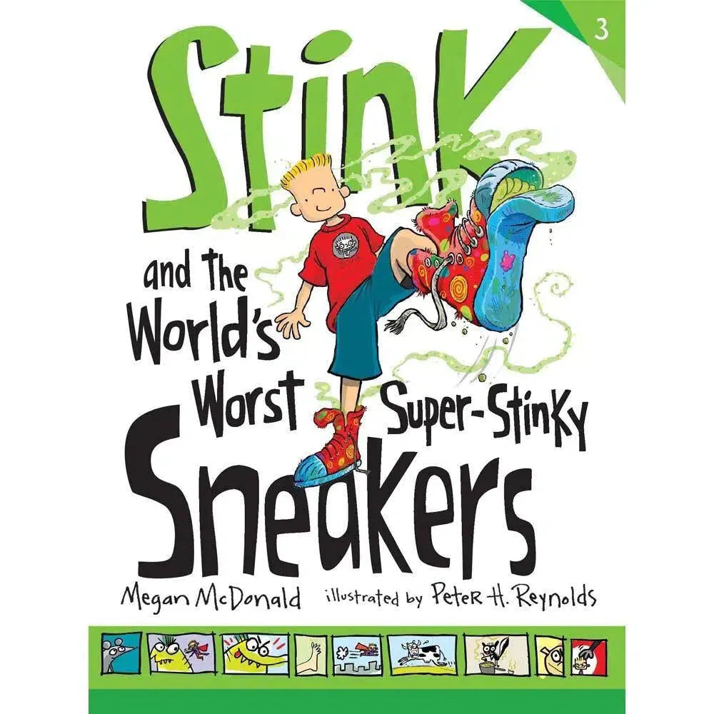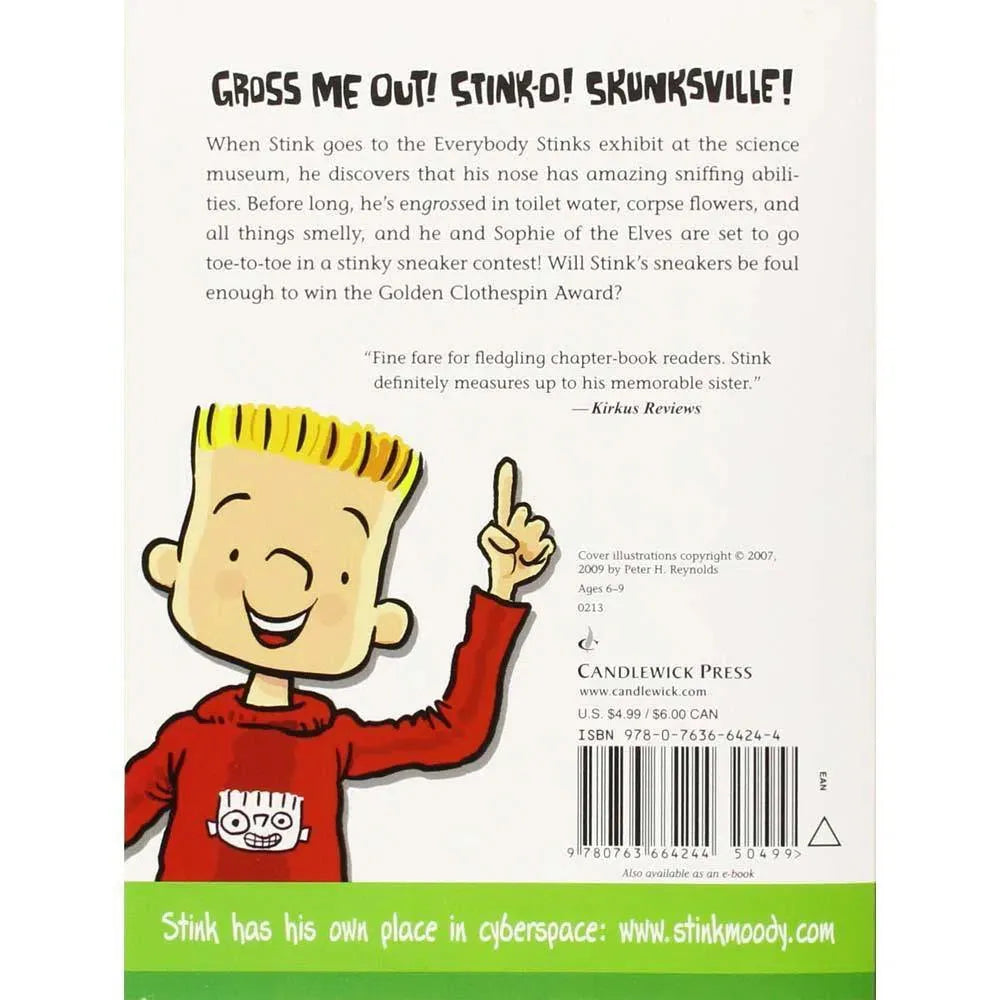 Stink Moody’s class is going on a field trip to the Gross-Me-Out exhibit at the science museum, and he can’t wait to see the Vomit Machine, the Burp-O-Meter, and the Musical Farts. Best of all, when he gets to the Everybody Stinks exhibit, Stink discovers that his very own nose has amazing sniffing abilities — and he learns that some people have real jobs sniffing stuff for NASA! Soon the junior olfactory wiz is engrossed in toilet water, corpse flowers, and all things smelly, and he and Sophie of the Elves are set to go toe-to-toe in a stinky sneaker contest. Will Stink’s fetid footwear be foul enough to earn him a Golden Clothespin Award? Stink’s loyal fans will be holding their breath this outrageous solo adventure.