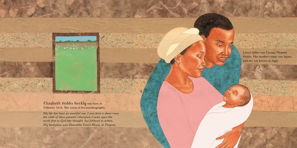 This picture book biography weaves together historical details, vibrant collages, and the words of her own journals to bring to light the life and beautiful work Elizabeth Hobbs Keckley, the seamstress who bought herself and son out of slavery. Lizzy’s story of hardship and resilience offers an untold side of history during a time of great injustice and change.