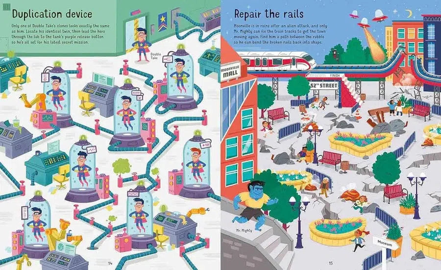 Thwart super villains in lava-filled lairs, perfect your powers at superhero school and protect cities from giant meteorites and menacing monsters as you find your way through this superb selection of superhero mazes. From fighting off alien attacks to sidekicks saving the day, each maze is more challenging than the last, and all the answers are at the back of the book.