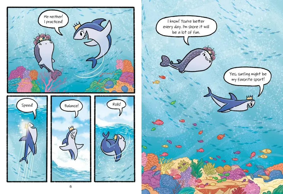 Surf's up! Another fin-tastic graphic novel adventure awaits with your favorite shark princesses, Kitana and Mack!