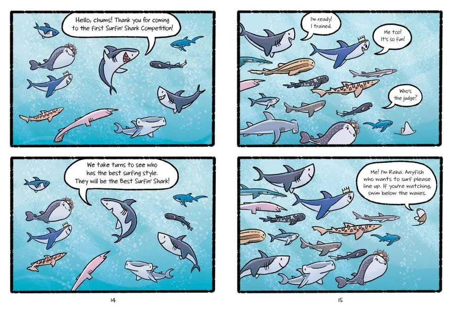 Shark princesses Kitana and Mack are back, just in time to attend the ocean's first Surfin' Sharks competition! Surfing is Mack's favorite sport, and he's been working really hard on his routine. But after a high-flying performance, he becomes discouraged once he sees a more talented shark and decides to quit for good.