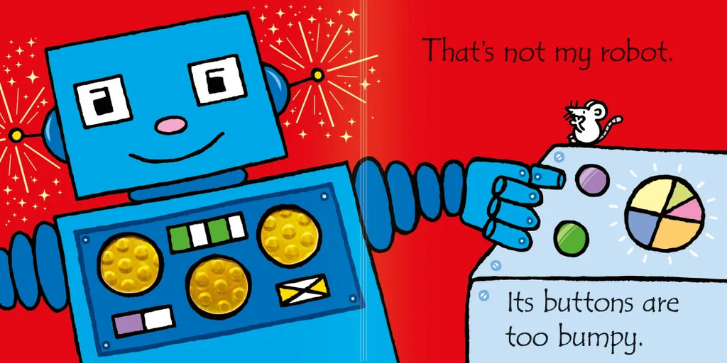 Meet five cool robots in this fun addition to the much-loved That's not my... series. Babies love the best-selling That's not my. books with their bold illustrations, patches to stroke, and a mouse to spot on every page, all designed to develop sensory and language awareness.