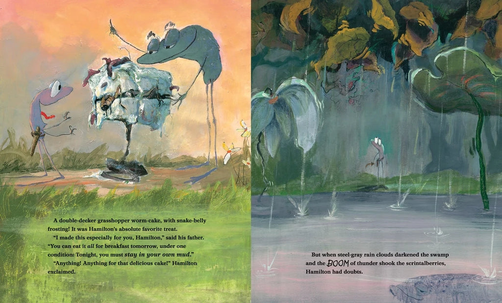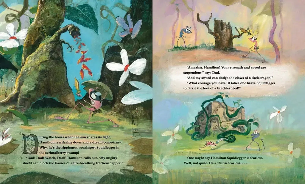 Hamilton Squidlegger is fearless! Well, almost. During the day he can best all the frackensnappers, skelecragons, and bracklesneeds in the swamp, but at night he quakes in terror. Will his father be able to help Hamilton remain fearless in his own mud all night? Timothy Basil Ering brings his signature energetic touch to this sweet story of father and son.