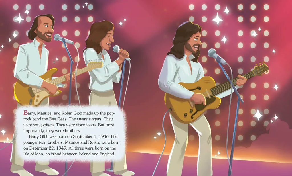 This Little Golden Book about The Bee Gees--the harmonizing brothers with hit songs including "Stayin' Alive" and "Night Fever"--is an inspiring read-aloud for young children, as well as their parents and grandparents who are fans of Barry, Robin, and Maurice Gibb.
