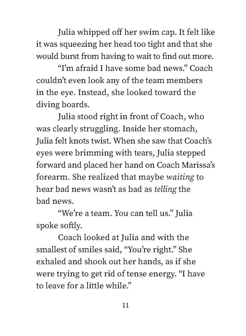Julia and her swim team struggle with a new strict coach, but she is determined to make a big splash regardless in this buoyant illustrated chapter book for ages 7 and up. For fans of Mindy Kim and Jasmine Toguchi.