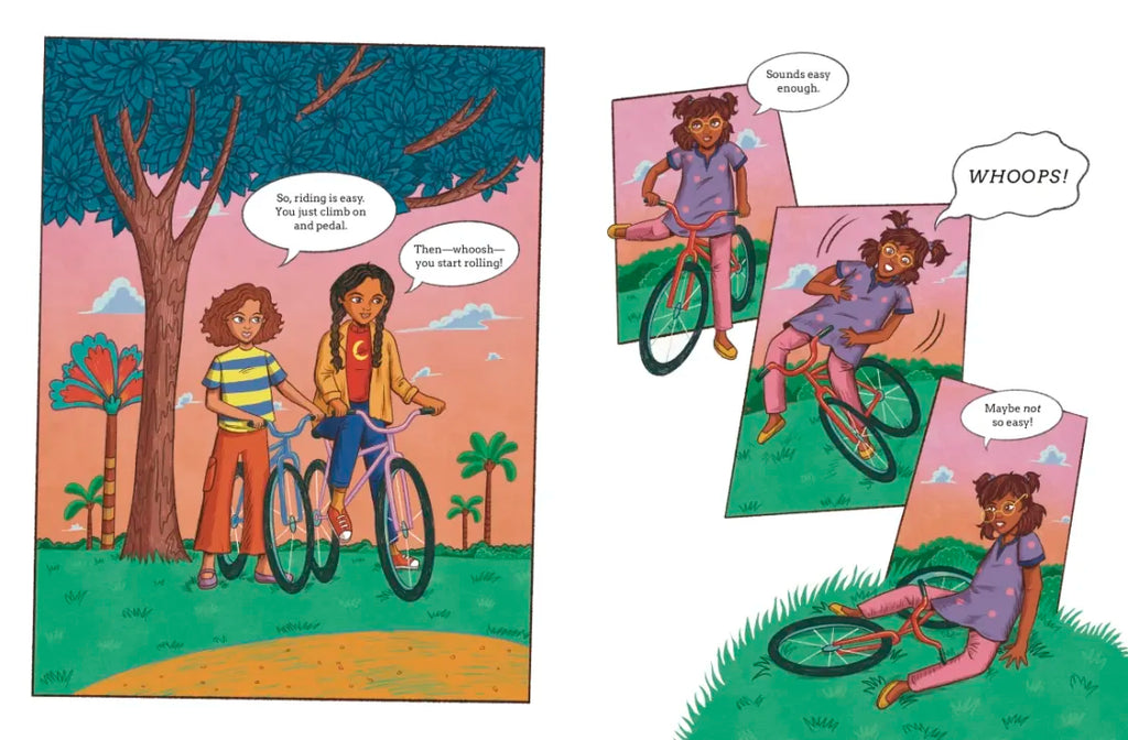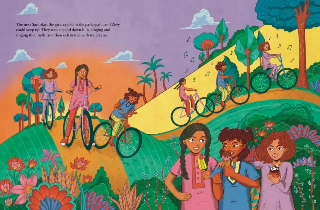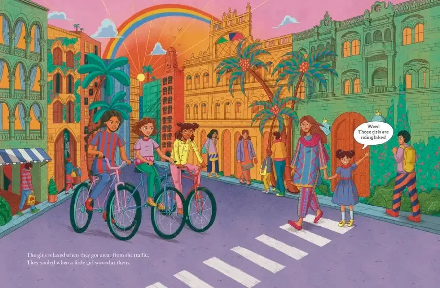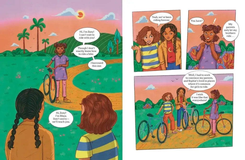 Zoey has never ridden a bike, as most people in her part of the world feel it’s strictly for boys. So when Sophie and Maya invite her to ride with them in the park, and offer to teach her how, she’s beyond excited. And once she gets the hang of it, she falls in love with the feeling of flying on her bike. But when the girls decide to leave the security of the park and venture into the city, it does not go smoothly—the people are not used to seeing girls riding bikes! Could Zoey’s dad be right that it’s not safe for girls to ride? Or is there something the friends can do to challenge the status quo about girls on bikes?