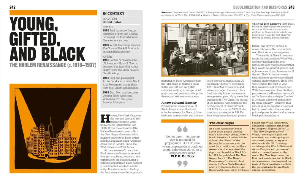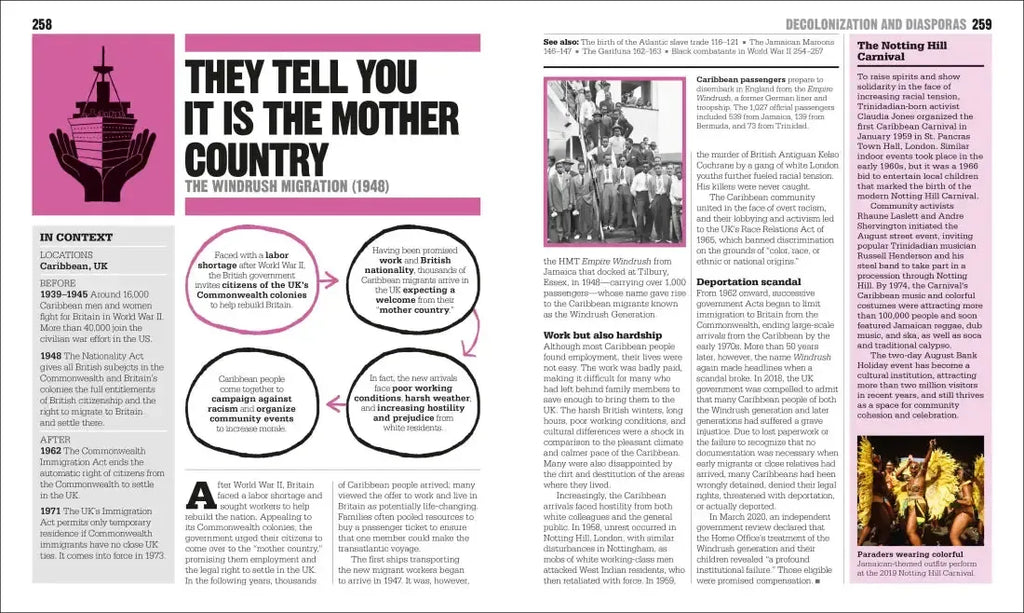 Which were the most powerful African empires? Who were the pioneers of jazz? What sparked the Black Lives Matter movement? If you thought it was difficult to learn about the legacy of African-American history, The Black History Book presents crucial information in an easy to follow layout. Learn about the earliest human migrations to modern Black communities, stories of the early kingdoms of Ancient Egypt and Nubia; the powerful medieval and early modern empires; and the struggle against colonization. This book also explores Black history beyond the African continent, like the Atlantic slave trade and slave resistance settlements; the Harlem Renaissance and Jazz Age; the Windrush migration; civil rights and Black feminist movements.