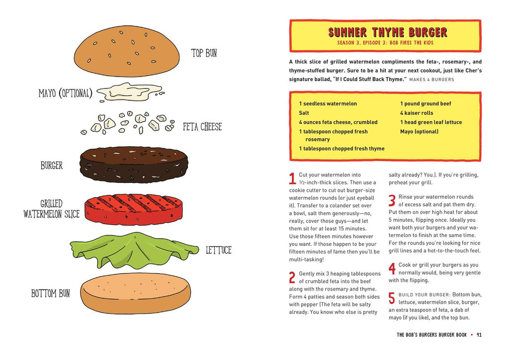 All recipes originated from Cole Bowden’s wildly popular "The Bob’s Burger Experiment" blog and were further developed together with Bouchard and the rest of the Bob’s Burgers writing team.