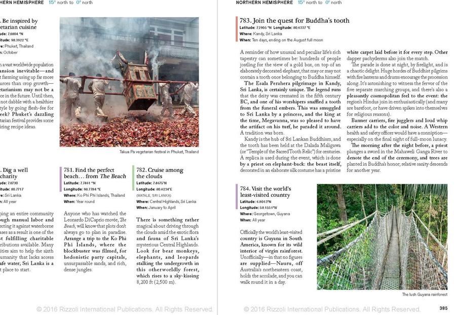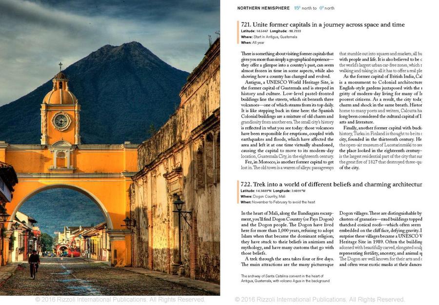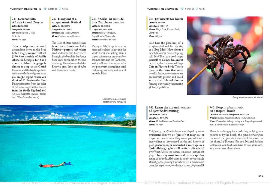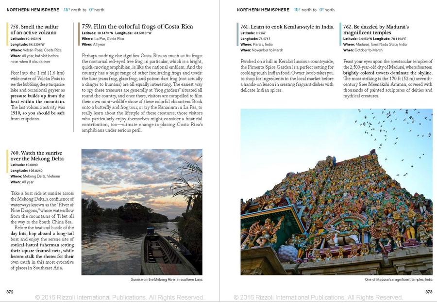 A travel book like no other, this unique guide will inspire both seasoned trekkers and arm-chair globetrotters alike to build experiences you will treasure forever. You'll find memorable, once-in-a-lifetime activities organized by longitude and latitude (country-by-country index also included) so you can max out your itinerary with the best things to do and the best places to visit around the world.