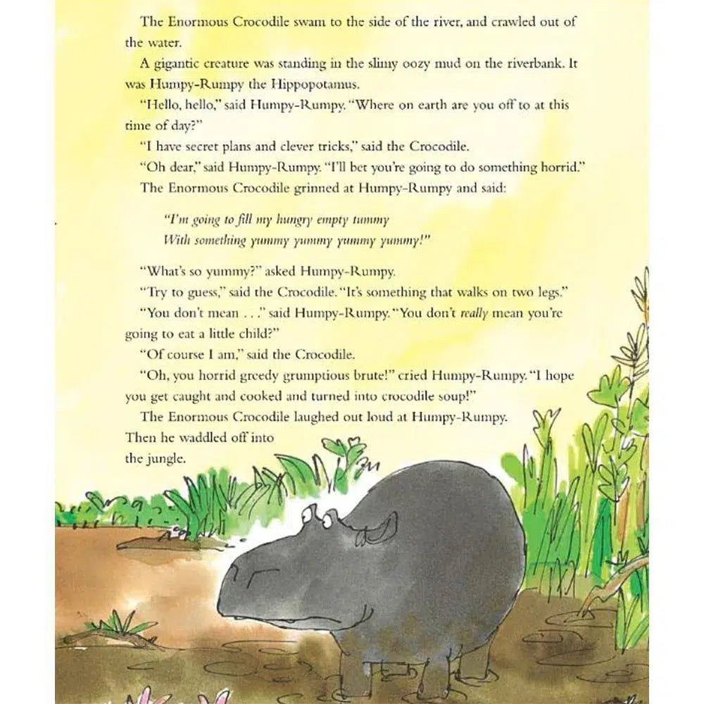 The Enormous Crocodile is a horrid greedy grumptious brute who loves to guzzle up little boys and girls. But the other animals have had enough of his cunning tricks, so they scheme to get the better of this foul fiend, once and for all!
