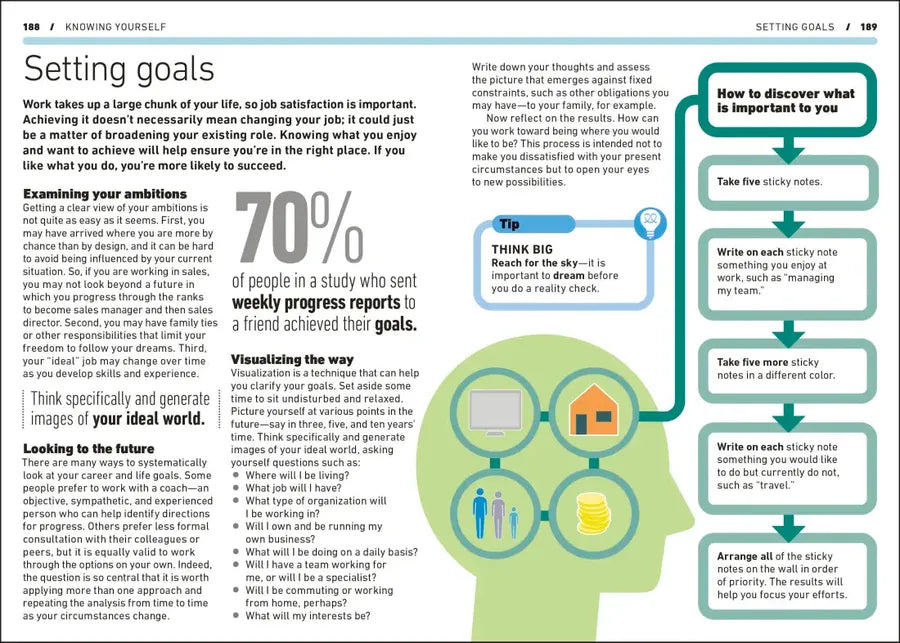 Jam-packed with interactive tools needed to thrive in a business environment, from setting goals to solving problems, delivering a speech to developing yourself, this business management book incorporates key quotes, bright visuals and breakdowns by subject, making it accessible and easy-to-use.