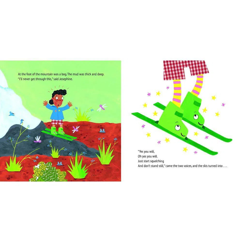 When Josephine leaves the shoe shop after buying some new running shoes, she hears an unusual sound – Click-click! Click-click! A bear with a backpack is following her! Luckily for Josephine, her new shoes are anything but ordinary – these are magic shoes. But can they help her escape the bear when there's a mountain, a bog and even a lake in her way?