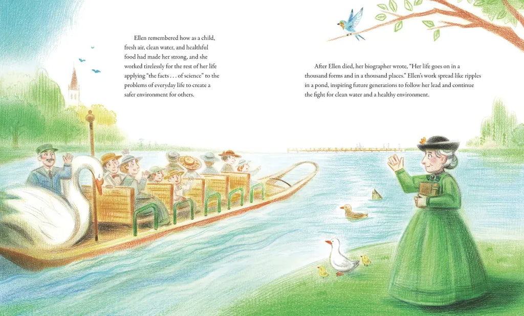 Ellen Swallow found a friend in nature and a lifelong love of science as a child exploring the woods around her family’s home. She was a voracious learner with an interest in chemistry, and continuing her education at the newly established Massachusetts Institute of Technology seemed a good fit. But in 1871, many believed that women belonged in the home, not in schools dedicated to the study of science. Ellen thought, why not both? She believed science could help solve the problems of everyday life, including the pollution she observed in Boston, so when offered the chance to study the city’s water systems, she seized it. What she found would change the way we think about clean water. In her lifetime, Ellen pioneered science education for women, advocated for a healthier environment, and helped develop the field of ecology. The Girl Who Tested the Waters, with engaging text and soft, inviting illustrations, portrays a woman ahead of her time and her tireless efforts to bring about change for good. Curious readers can find more in the back matter, including a time line, an author’s note, source notes, and a bibliography.