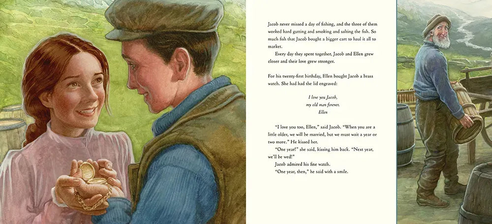 Jacob and his father are the only people who fish Lake Spetzia, which was formed when the river was dammed and their town was flooded. The villagers say the lake is haunted, but Jacob and his father don’t want to leave, because Jacob’s mother is buried in the cemetery below the water. As Jacob grows up, a village girl named Ellen falls in love with him, and he with her. But before they are married, Jacob disappears—lured underwater by the ghosts who inhabit the sunken village. Years go by, with Jacob held captive by the watery spirits and Ellen never giving up hope that she will find him, until a fateful night when Jacob sees the light of Ellen’s boat floating above. Can he break free and reach the surface? Masterful illustrations alive with achingly expressive characters and eerie underwater light bring readers into acclaimed creator P.J. Lynch’s rich world of love, loss, and hope.