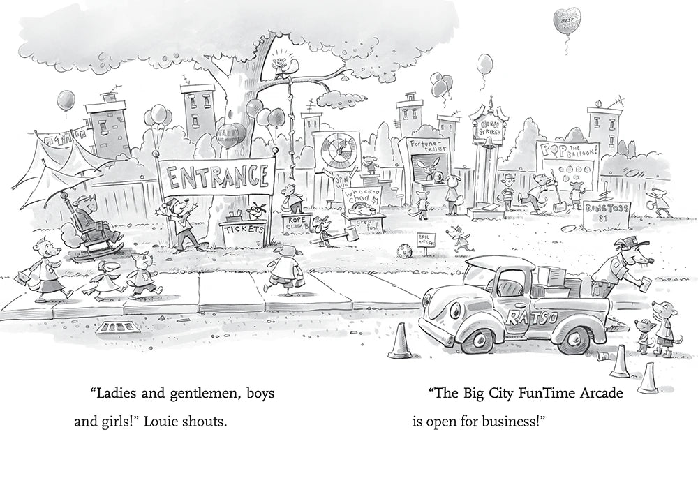When Louie and Ralphie Ratso set out to transform a cluttered lot into an arcade, they end up conquering a few surprising fears along the way in this follow-up to the Theodor Seuss Geisel Honor Book The Infamous Ratsos.