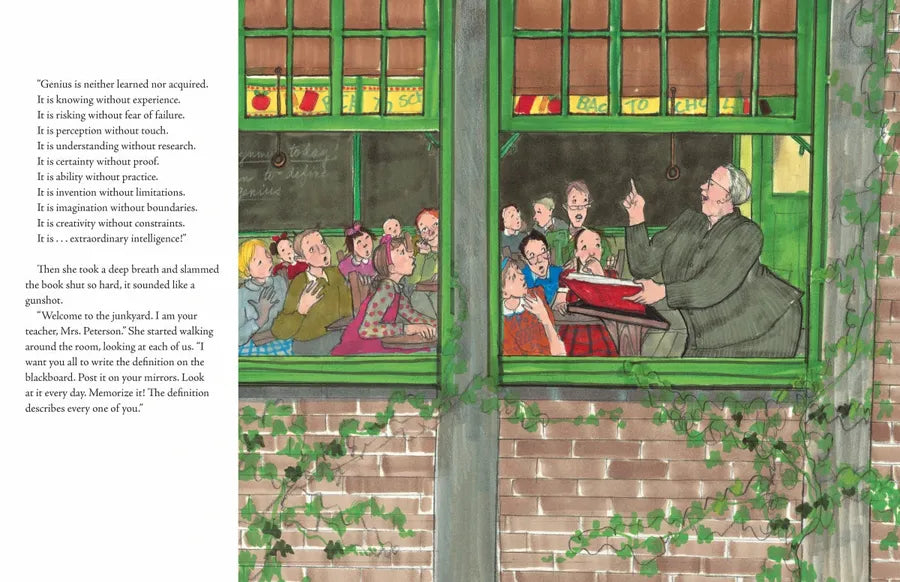 Young Trisha is devastated when she finds out that her class at her new school is known as the junkyard. It is a special class, and she had moved from where she used to live so she wouldn’t be in a special class anymore! But then she meets her teacher, the amazing Mrs. Peterson, and her classmates, an oddly brilliant group of misfit kids, whom the other kids in school call the junkyard kids. Much to her own surprise, it is here in the junkyard that Trisha discovers the true meaning of genius, and that this group of misfits are, in fact, Junkyard Wonders, each and every one of them.