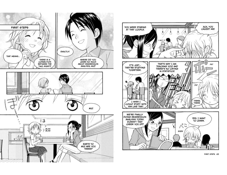 Like a lot of people, Miu has had trouble learning regression analysis. But with new motivation—in the form of a handsome but shy customer—and the help of her brilliant café coworker Risa, she’s determined to master it.