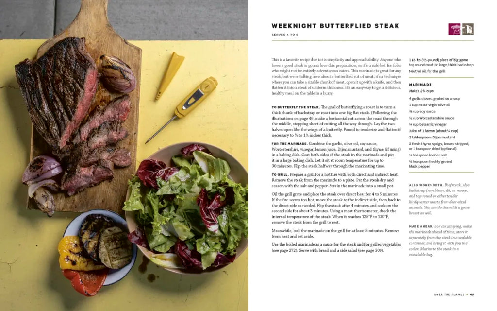Each chapter covers a different outdoor cooking method—grilling, smoking, cooking over coals. Throughout, recipes are tagged for backyard cooking, car camping, or backpacking. There’s something here for everyone who loves the outdoors, from backyard grill masters to backcountry big game hunters.