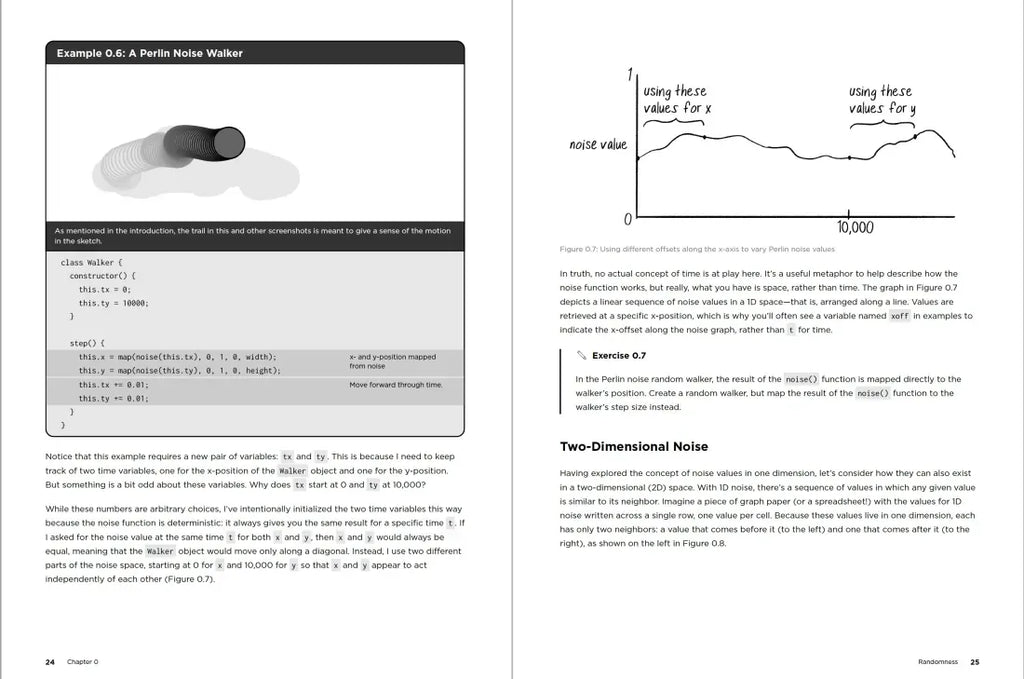 NOTE: All examples are written with p5.js, a JavaScript library for creative coding, and are available on the book's website.