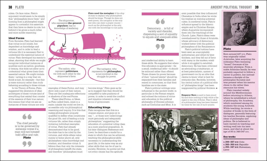 Discover everything from the origins of democracy to Machiavelli's cunning statecraft, and from Rousseau's “social contract” to Marxist communism, the dawn of populism, and identity politics. And explore the “big ideas” behind the numerous different political beliefs and methods of government used around the world and throughout history.