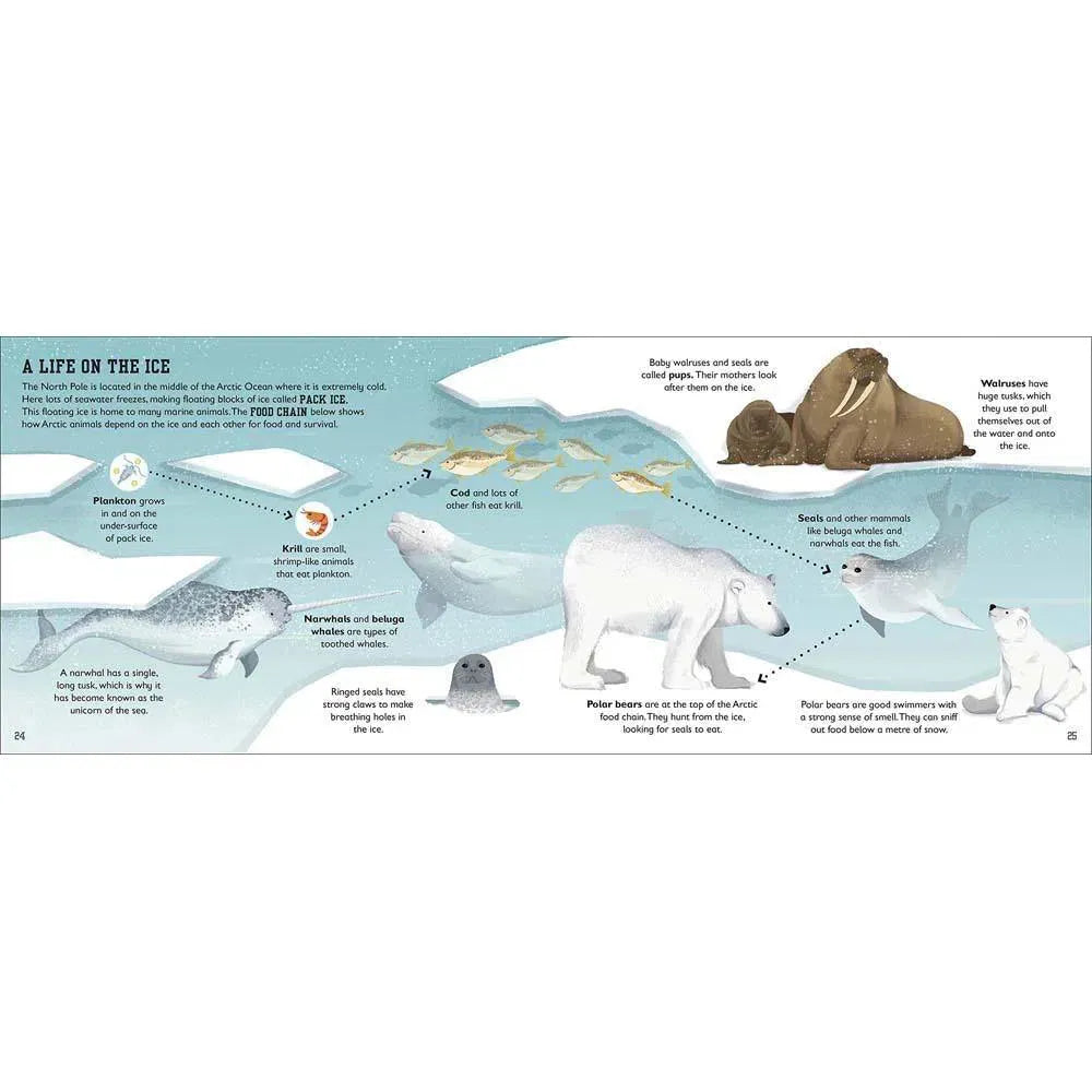 The Sea Book is the coolest educational book about the sea, covering a wealth of sea animals, including mammals, fish, invertebrates, and reptiles. It explores the underwater worlds of incredible marine life and their habitats. From up on the ice, down to colorful coral reefs, underwater forests, and right down to the deepest darkest depths where the weird and wonderful lurk - it's sure to delight any ocean obsessed child.