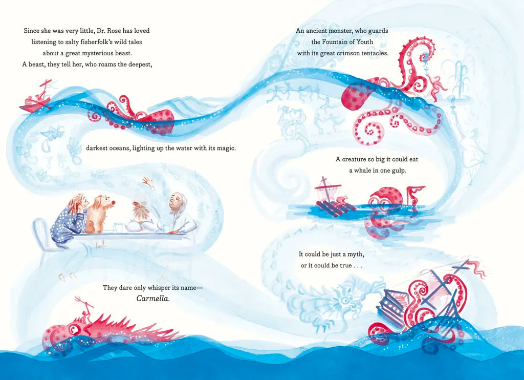 Ever since Dr Rose was a little girl paddling in rock pools, she has always loved the sea and exploring the weird and wonderful creatures living there. Now, as a marine biologist, Dr Rose is in search of a sea creature rumoured to reside within its hidden depths; one that many speak of, but no one has ever seen – Carmella. With her team of scientists and explorers, she will descend to the unfathomable dark of the deep ocean in a slick submersible, to discover the incredible, and almost unbelievable, creatures that inhabit a nearly pitch-black world.