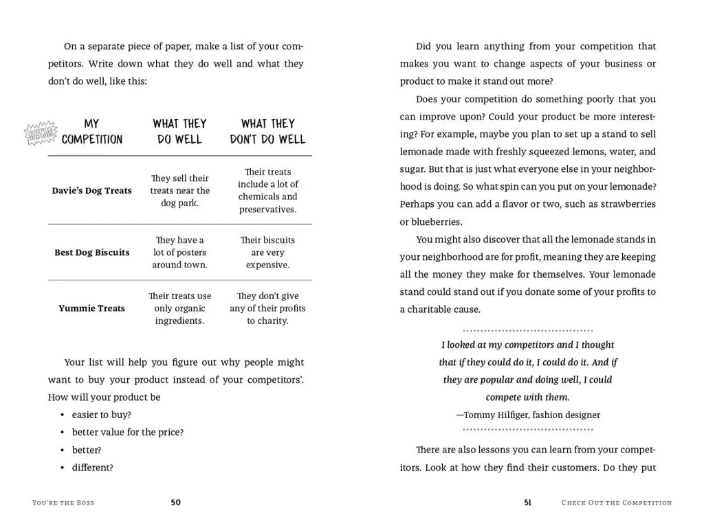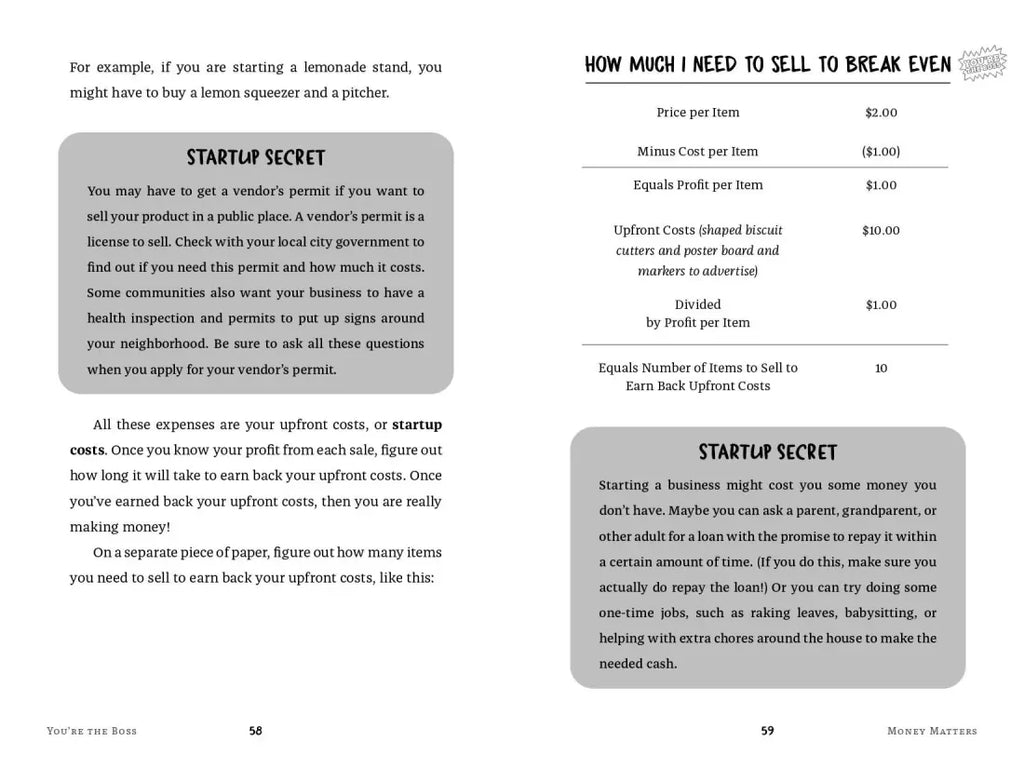 You’re never too young to start a business. Whether you want to launch a babysitting service, run a lemonade stand, sell crafts online—or don’t even know what business to start—You're the Boss is here to help. In this book, you'll learn how to figure out which business is right for you, find your ideal customers, manage the competition, calculate costs and profits, pitch your ideas, and so much more.