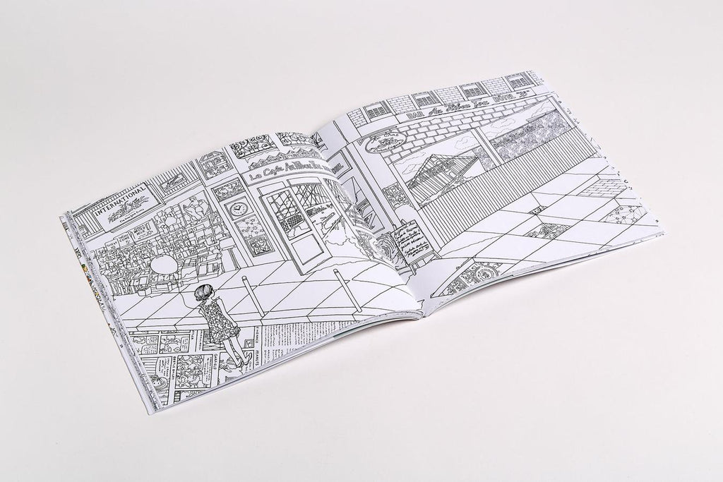One night, a young girl’s father brings home an antique cuckoo clock. Journey with her through the doors of this mysterious clock into its inky inner workings and discover a magical land of clock gears, rooftops, starry skies, and giant flying owls—all ready for you to customize with whatever colors you can dream up.