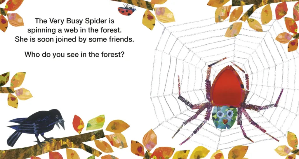 Greet a new friend with each turn of the page as you explore the forest with The Very Busy Spider. Interactive text encourages young readers to feel and think about each texture they encounter, and Eric Carle's colorful art sets each delightful scene. Classic characters come to life in this sensational story--perfect for little hands!