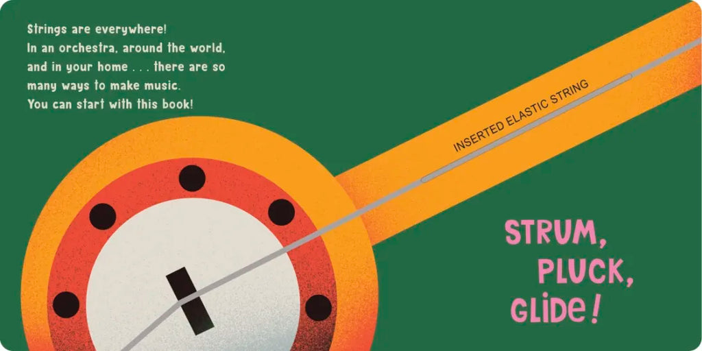 What do a guitar, a harp, and a piano have in common? They are all strings! This first introduction begins with a simple explanation of what defines a string instrument. Young readers are then invited on a global exploration of a variety of different stringed instruments and are encouraged to find strings of their own in the world around them. Includes a bound-in string to strum, and a visual glossary.