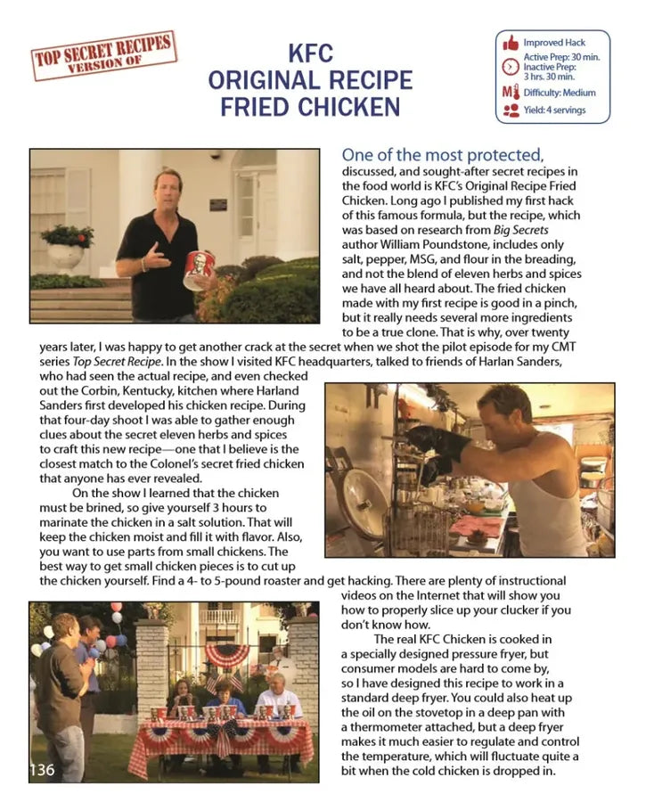 For more than twenty-five years, Todd Wilbur has been obsessed with recreating America's most iconic brand-name foods at home. In his first cookbook with color photos, the New York Times bestselling author brings you 125 new clone recipes: 75 first-time hacks and 50 overhauled all-time favorites. Each recipe comes with easy-to-follow step-by-step photos so that even novice cooks can perfectly recreate their favorite famous foods with everyday ingredients. And your homemade versions cost just a fraction of what the restaurants charge! The result of years of careful research, trial-and-error, and a little creative reverse-engineering, Top Secret Recipes® Step-by-Step hacks: