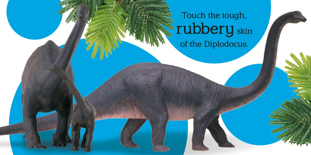Touch the bumpy scales, smooth horns, and sticky tongues of dinosaurs in this classic DK board book filled with clear photography, simple text, and fun textures for young readers to explore.