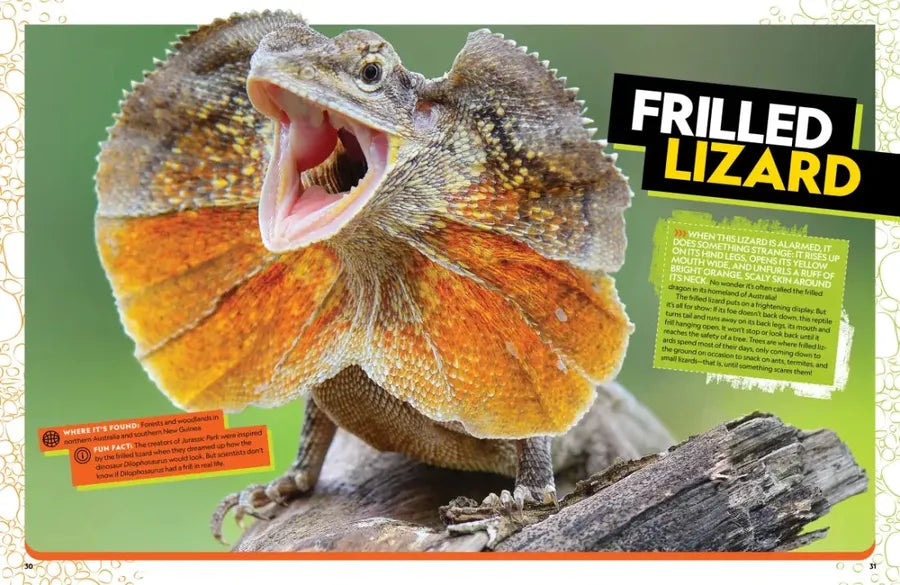 Meet the coolest cold-blooded animals ever. From lizards to snakes, turtles to crocodiles, something called a tuatara, and even enormous prehistoric reptiles (think real-life sea monsters!), you’ll discover what makes a reptile a reptile; how these creatures live, hunt, hide, and raise their young, and the wild adaptations that make them so unique. Learn which snake is the most venomous on the planet and which are surprisingly gentle creatures, which reptile is born with a highly developed third eye in its forehead, and which one is so tiny it could balance on the tip of your finger—plus loads of super important conservation information and impactful ways to join the fight to save endangered reptile species right from home!