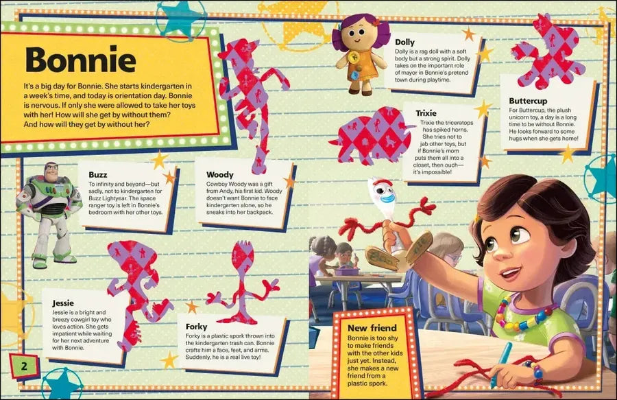 Follow Woody and the toy gang on their awesome Toy Story 4 adventures as you discover key locations, from Bonnie's bedroom to the fairground and the antiques store. Check out cool vehicles like Duke Caboom's motorbike and find out all the movie's most iconic moments as Woody, Buzz and their friends take on the road trip of a lifetime! Colourful stickers are perfect for decorating children's bags, pencil cases and other belongings.