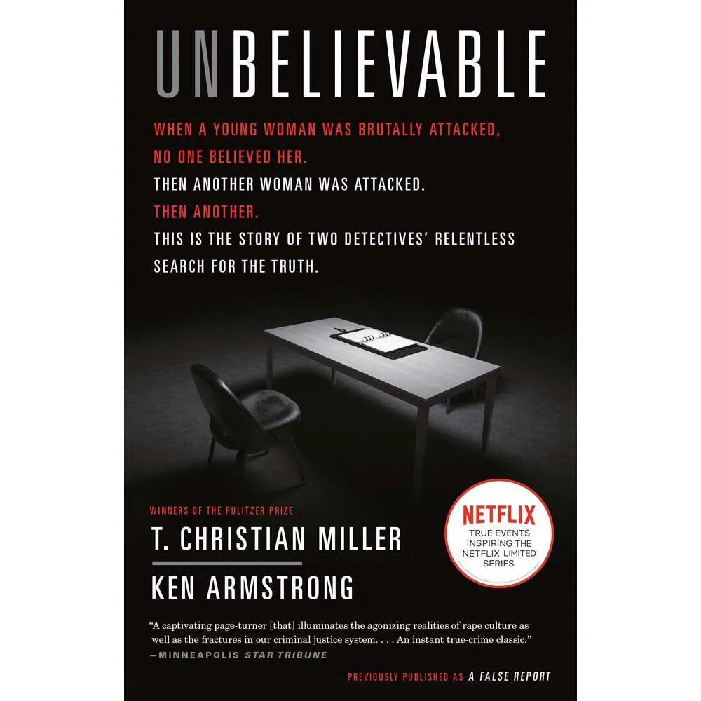 Now the Netflix Limited Series Unbelievable, starring Toni Collette, Merritt Wever, and Kaitlyn Dever - Two Pulitzer Prize-winning journalists tell the riveting true crime story of a teenager charged with lying about having been raped--and the detectives who followed a winding path to arrive at the truth.