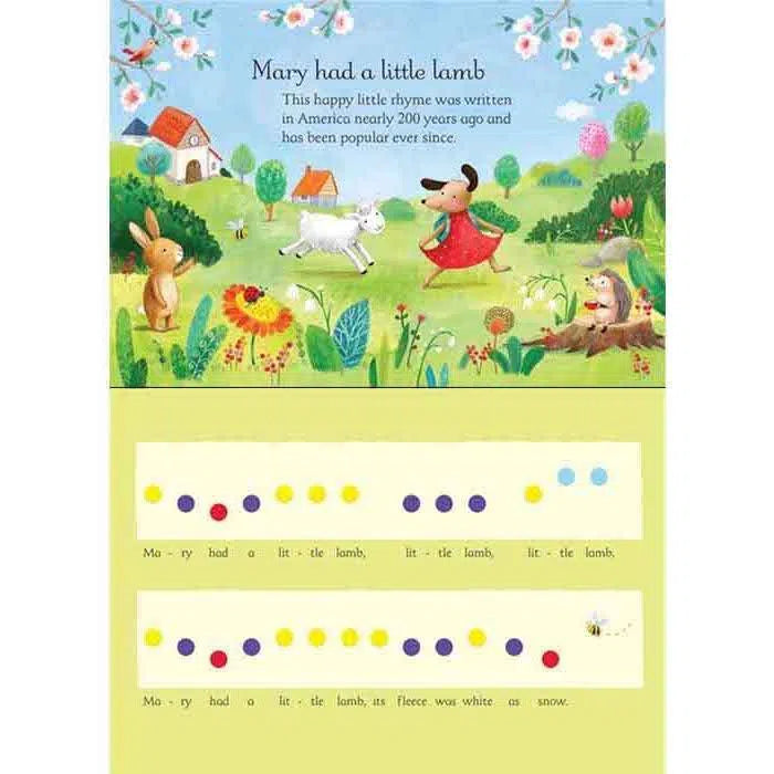 Little children can discover the magic of making music with the keyboard built into this beautifully illustrated book. There are ten beloved nursery rhymes to play, including Row, row, row your boat, Twinkle twinkle little star and Jack and Jill, plus simple instructions and links to hear all the tunes online.