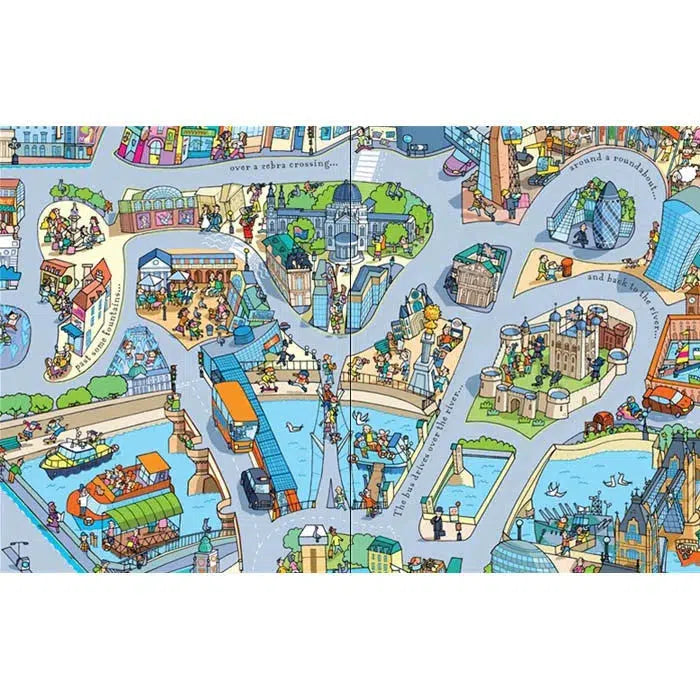 A wind-up model of a red, double-decker London bus and four tracks take you on a tour of the famous city. Find out about London's most famous landmarks and attractions as your bus stops on its way. The four tracks can also be taken out of the book and joined together to make one huge track for the bus to travel around.