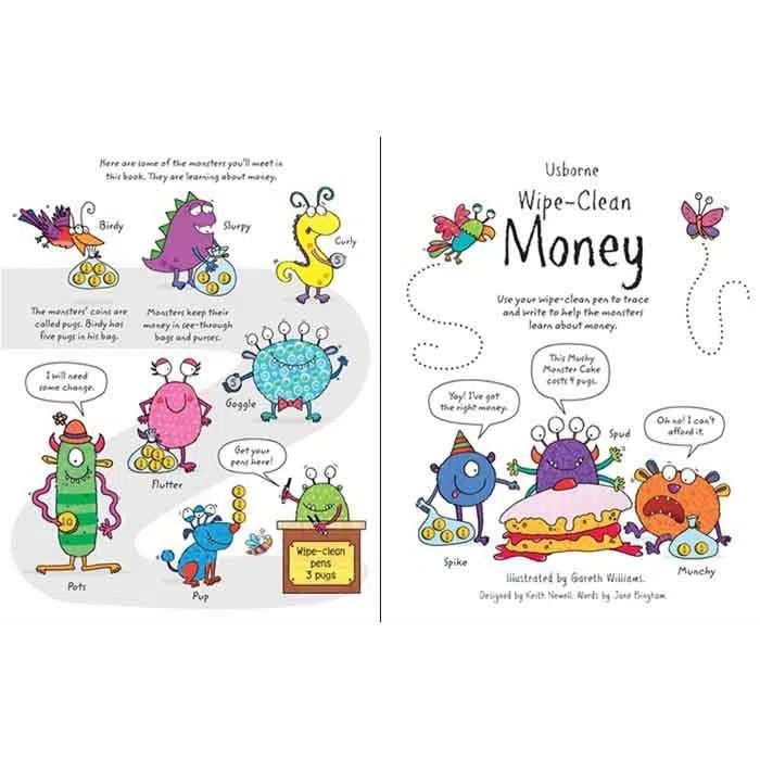 This colourful activity book is a perfect way for young children to start learning about money. Join the friendly monsters and complete a variety of fun activities, including coin counting, buying snacks, visiting the monster market and more. Great for developing pen control, and the pages are wipe-clean so children can practise again and again.