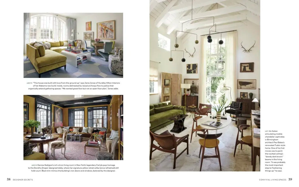 Designers and architects featured throughout the book: Bunny Williams, Caroline Gidiere, Cece Barfield Thompson, Ceara Donnelley, Charlotte Moss, Colette Van Den Thillart, David Jimenez, Emily Satloff, Hundley Hilton, Jane Scott Hodges, Jan Showers, Jeffry Weisman, John Oetgen, Ken Pursley, Laura Kirar, Mary Graham, Michael DePerno, Palmer Weiss, Paul Bates, Raul Cabra, Renvy Graves Pittman, Sue Jones, Thomas O'Brien-Dan Fink, and William Eubanks.