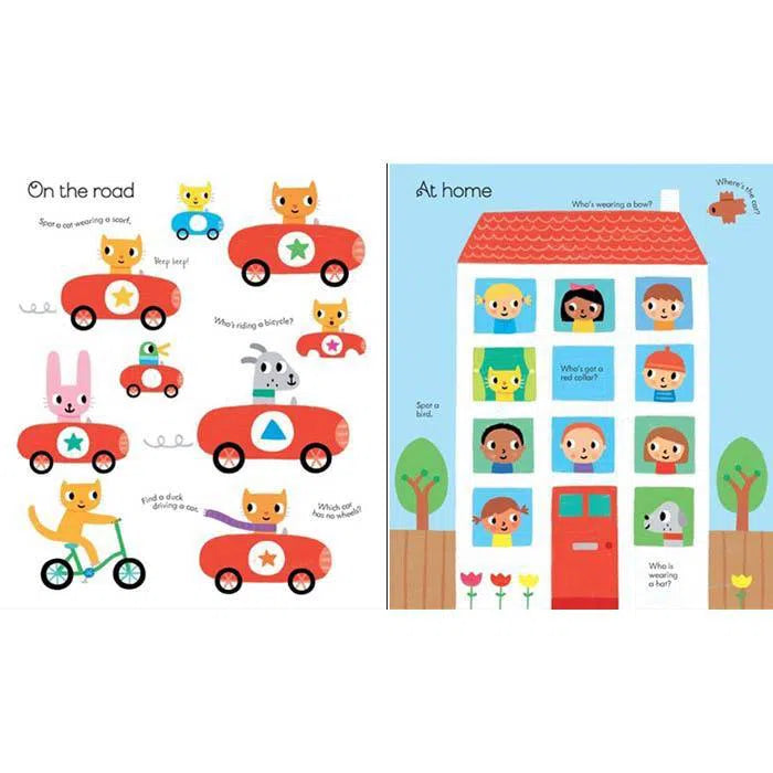 A look-and-talk book for very young children, with simple, bright illustrations and lots to see and spot on every page. Children can spot starfish at the beach and shells under the sea, as well as a whole host of robots, cars, flowers and friendly animals. Perfect for sharing with little children and will help them learn new words and develop vital pre-reading skills.