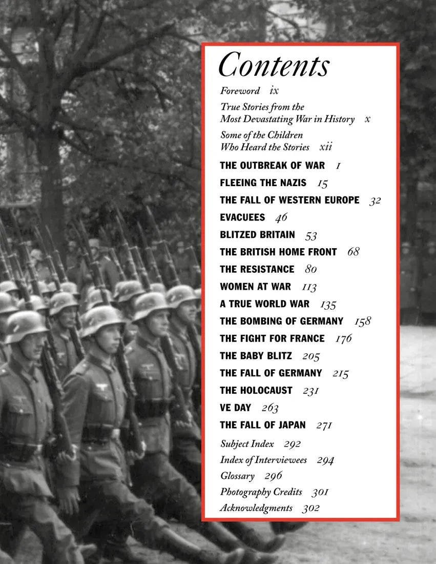 The Second World War was the most devastating war in history. Up to eighty million people died, and the map of the world was redrawn. More than seventy years after peace was declared, children interviewed family and community members to learn about the war from people who were there, to record their memories before they were lost forever. Now, in a unique collection, RAF pilots, evacuees, resistance fighters, Land Girls, U.S. Navy sailors, and survivors of the Holocaust and the Hiroshima bombing all tell their stories, passing on the lessons learned to a new generation. Featuring many vintage photographs, this moving volume also offers an index of contributors and a glossary.